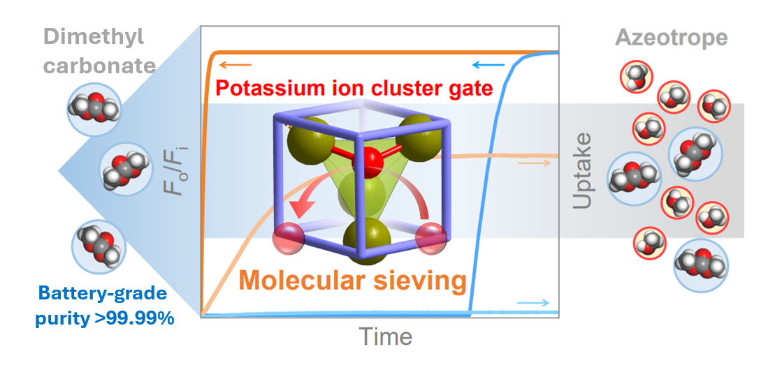 1. 钾离子簇门控实现MeOH/DMC共沸物的分子筛分,生产出电池级的DMC示意图