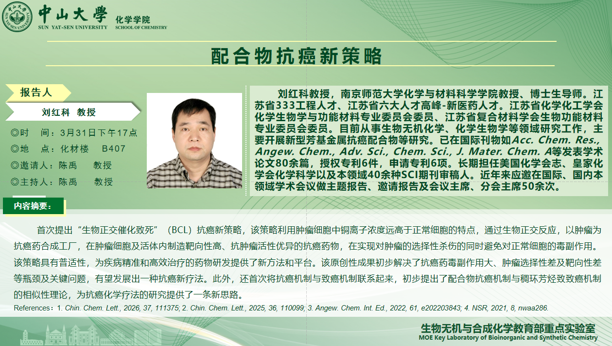 2026年3月31日讲座论坛:配合物抗癌新策略