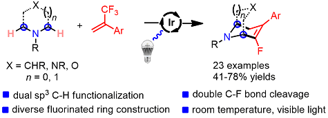 Visible Light-mediated Twofold Unsymmetrical Sp3 C-H Functionalization and Double C-F Substitution.