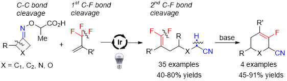 Visible-Light-Promoted Redox Neutral γ,γ-Difluoroallylation of Cycloketone Oxime Ethers with Trifluoromethyl Alkenes via C–C and C–F Bond Cleavage.