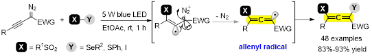 ynthesis of Tetrasubstituted Allenes via Visible-Light-Promoted Radical 1,3-Difunctionalization of Alkynyl Diazo Compounds.