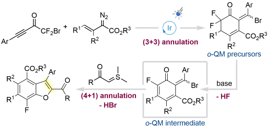 gem-Difluoro-Masked o-Quinone Methides Generated by Photocatalytic Radical (3+3) Annulation and Their (4+1) Cycloaddition with Sulfur Ylides.